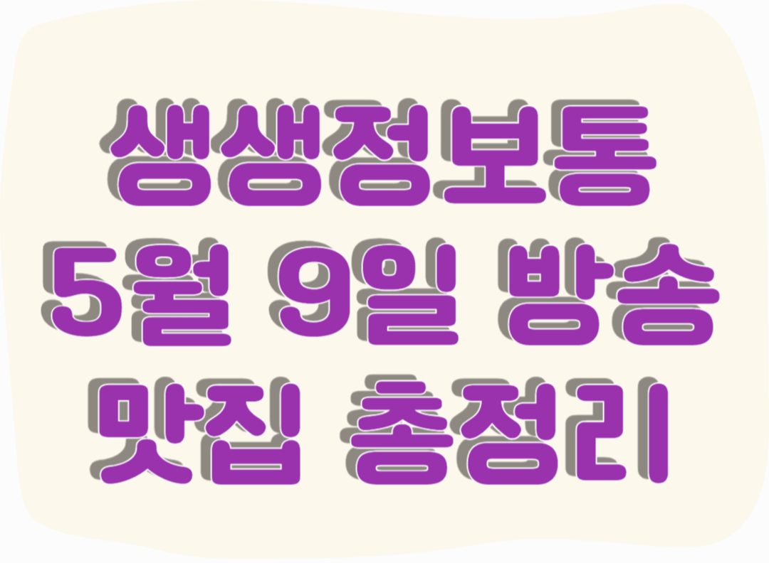2025년 5월 9일, KBS2 <생생정보통>에서는 전국 각지의 숨은 맛집들을 소개하며 시청자들의 입맛을 사로잡았습니다. 이번 방송에서는 25년 전통의 대왕조개칼국수부터 평양냉면, 간장게장, 한우미역국까지 다양한 메뉴가 소개되었는데요. 오늘은 방송에 소개된 맛집들을 한눈에 볼 수 있도록 정리해드리겠습니다.